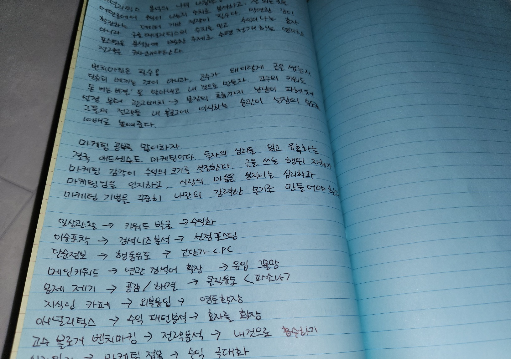 강의만 듣고 끝내는 게 아니라, 진짜 제 것으로 만들고 싶어서 못생긴 글씨로 작성한 저의 비밀노트? 입니다. 직접 적어야 더 기억에 남고, 하나라도 더 실천하게 되더라고요! 이제는 하루 30달러가 아니라 300달러에 도전하고 있어요